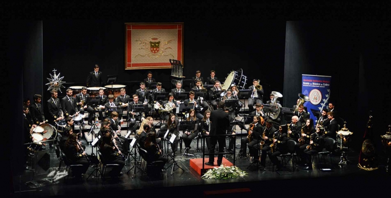 A la entrada de la Sala pudimos observar que la Casa Discográfica SONOGRAFIC estaba ofreciendo un CD denominado "In Excelsis". Se trata de un proyecto para dar oportunidades a bandas como la de Cabra para que puedan darse a conocer y promocionarse. Entre las grabaciones se incluyen dos de las que se programan en este concierto, "Dolor de una Madre" del anterior director Manuel González, marcha del 2015 que compuso para el 60 aniversario de la Cofradía de Ntra. Sra. del Mayor Dolor de Cabra. Es melódica y está muy bien desarrollada. Así como "Consolación" de Antonio Moral, con buena introducción, la actuación de trombones y clarinetes y un sonido lúgubre.
