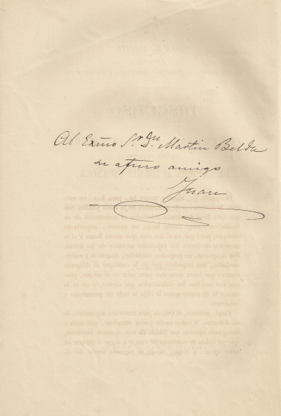 Ms.: "Al Excmo. Sr. Dn. Martín Belda su afmo. amigo Juan".