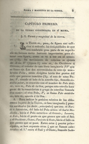 La parte primera de la obra está dividida en dos libros: De la cosmografía y De la geografía física. En el apartado de Cosmografía se considera a la Tierra en sí misma y en sus relaciones con los cuerpos celestes. Se plantean problemas que se resuelven por el globo terrestre y por los mapas, finalizando con unas observaciones geográficas deducidas de todo lo expresado en los textos anteriores, de la que copiamos literalmente la última de ellas: