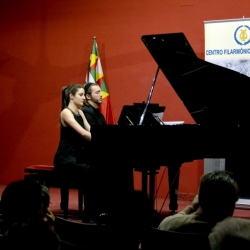 Más bien que piano a 4 manos era una ejecución con dos pianos, pues la partitura se repartía al 50%. El silencio más absoluto inundaba la Sala "Maestro Moral", escuchando a estos músicos tan perfeccionistas, que formaban una pareja exquisita en todos los sentidos. Bravos y palmas premiaron su actuación.