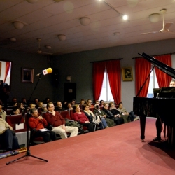 El presidente del Centro Filarmónico presentó a los hermanos pianistas y comentó que las obras que íbamos a escuchar son específicas para el piano a 4