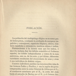 Localizamos en el estudio datos estadísticos que reflejan el estado de la enseñanza. Las páginas sucesivas se dedican a la importancia que tienen los productos de la tierra en Filipinas y a la asombrosa fertilidad del país. La planta más general es la planta del arroz, principal sustento para el indio. La industria existente es escasa, achacándolo al atraso del país. También aborda el Comercio, incluyendo un cuadro estadístico de importación y exportación de los años 1879 a 1883. Se ofrecen detalles específicos de cada isla.