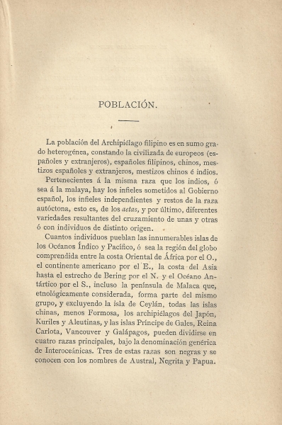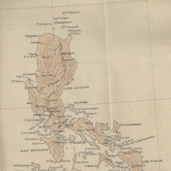 En el apartado de situación, límites y extensión explica que los primeros navegantes castellanos denominaron al archipiélago de las Célebes (como en lo antiguo se decía islas del Poniente), los portugueses islas del Oriente, y los chinos y japoneses isla de los Buzones. Villalobos les puso el nombre de Filipinas en honor del príncipe Felipe II.