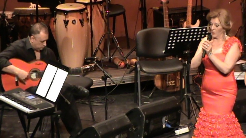 También Kiko inició unos compases con el público, de la siguiente obra, la conocida "MARÍA LA PORTUGUESA", de Carlos Cano, que la magnífica voz aflamencada de Carmen Cuenca, que lució palmito con una bello vestido, se encargó de decirla, con eso, su magnífica voz. Palmas y silbidos (de los buenos, como el colesterol) rubricaron su gran actuación.