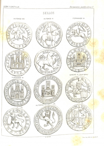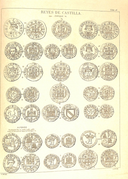 En cuanto a las láminas de monedas se adjuntan las correspondientes a la n.º 1 hasta la n.º 69. Hay dos hojas plegables: Privilegio de la Reina Doña Urraca concedido en 1116 al Abad del monasterio de Sahagún para labrar moneda y Privilegio del rey Don Alfonso VII concedido en 1119, también al Abad del monasterio de Sahagún para labrar moneda. Las láminas de grabados de reyes son de Pedro I, Juan I, Juan II, Isabel I y Fernando V. Continúa con dos láminas de sellos de Alfonso XI, Alfonso IX y D.ª Constanza (mujer de Fernando IV). Hay más láminas de grabados de reyes de España: Carlos I,