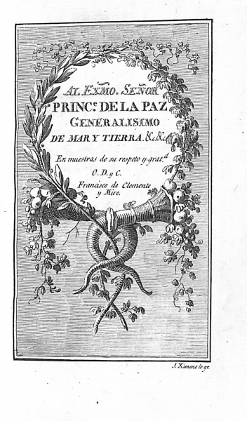 T. I. Ilustración. Dedicatoria al Excmo. Señor Príncipe de la Paz.