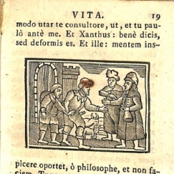Traemos como Libro de la Semana las fábulas de Esopo, en una edición latina dada a la estampa en Madrid (Matriti) en 1825, en la imprenta de la viuda de Plácido Barco López. Plácido Barco (1747; 1803), impresor y librero en Madrid, trabajó para la Real Compañía en 1787. Años antes, en 1782, pasó a sus manos la imprenta de Manuel Martín, en cuyos talleres, dicen, fue aprendiz. Tras su fallecimiento en 1803, la viuda, de segundas nupcias, desarrolló la labor en la calle de la Cruz hasta 1825, acuñando marca propia.