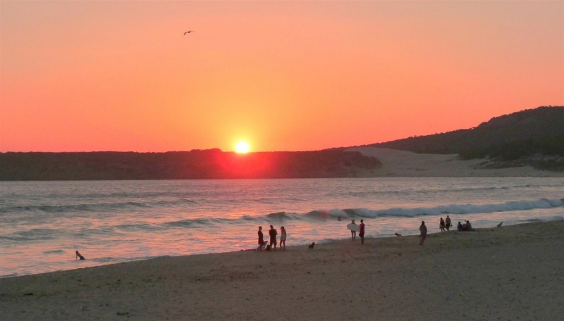 Atardecer en la playa, el permanecer sentado a la hora del crepúsculo en las incomparables playas de Cádiz, frente a la inmensidad del mar, perder la vista en el horizonte, sintiendo la suave brisa sobre la cara y esquivando cualquier atisbo de preocupación de las que diariamente nos asaltan, me parece un momento único. Pura sensualidad. Un disfrute de los sentidos. De la vista. La arena confundiéndose con las sinuosas aguas que avanzan y se retiran en sutiles oleadas. Los tonos rojizos anaranjados y violetas del horizonte. El majestuoso astro va diciendo adiós, convertido en círculo luminoso imposible de mantener en la mirada, queriendo dejar su aureola reflejada en una estela resplandeciente que se alarga y resalta en unas aguas, ya oscurecidas, a esta hora del crepúsculo. El tacto de la suave brisa en el cuerpo semidesnudo, hacen más placentera la situación. Pero el oído tampoco se queda atrás y al continuo y suave susurro del rompeolas se suma el grave y tumultuoso clamor de fondo de un mar profundo y ensombrecido, consiguiendo un escenario irrepetible y distinto por muchas veces que lo contemplemos. Por fin el sol termina por desvanecerse en el horizonte. La brisa ahora parece hacerse más patente y de pronto sentimos la necesidad de buscar alguna prenda con que cubrir nuestros hombros.