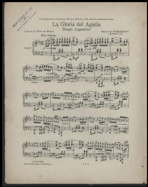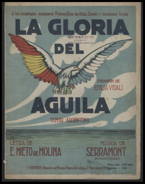 Volviendo a Carlos Gardel, en 1926 se encuentra en Barcelona y, al año siguiente, grabará el tango La gloria del águila en homenaje a la hazaña del Plus Ultra.