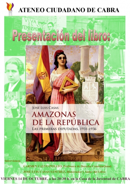 El próximo viernes 14 de octubre a las 20:30h en el salón de actos de la Casa de la Juventud de Cabra, se presenta el libro Amazonas de la República, del que es autor el historiador egabrense José Luis Casas Sánchez.