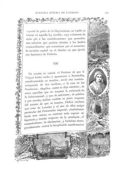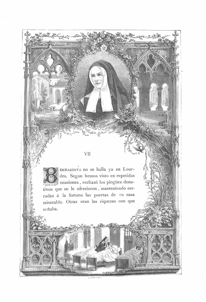 Recoge, "aun a riesgo de ser difuso", "las infinitas pruebas a que fueron sujetas las apariciones de la Santísima Virgen, en la persona de su predilecta Bernadette", trasladando íntegro el relato que hace el autor de lo que aconteció entre el cura párroco y las autoridades locales, "empeñadas en encerrar en un manicomio a aquella inocente criatura". Termina señalando que con su lectura "conocerán una vez más las misericordias de Dios, manifestadas por conducto de su Santísima Madre".