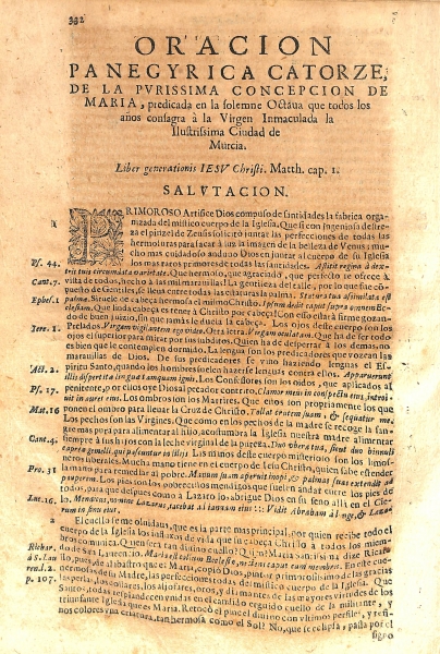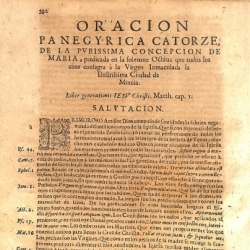 Entre las explicaciones de los cinco tratados de números doctrinales, llamado Enigma Numérico Predicable, se intercalan una serie de oraciones panegíricas que parece oportuno enumerarlas: de San Pedro de Alcántara, predicada en la iglesia catedral de Granada; de la translación de San Pedro de Alcántara a su nueva capilla en la ciudad de Murcia; del Rosario de María Santísima, predicada en la solemnísima Octava que el año de mil seiscientos y setenta y dos se celebró en el Real Convento de Santo Domingo de la ciudad de Murcia; de San Luis de Beltrán y Santa Rosa, predicada en la solemnísima Octava que en glorias de su canonización celebró el Real Convento de Santo Domingo de la ciudad de Murcia; del Santísimo Sacramento predicada en la fiesta grande que a sus glorias se consagró en la parroquia de Santiago de Guadix; del Santísimo Sacramento predicada en la ciudad de Guadix; de la predicada en la fiesta grande que consagraron a la Madre de Dios de las Angustias sus esclavos nobilísimos en los tres días de Pascua del Espíritu Santo; de las Angustias gloriosas de Maria predicada el primer día de su Octava en su misma parroquia de Granada; de la Encarnación del Verbo Divino y Anunciación de la Virgen Nuestra Señora, predicada en el Real Convento de Religiosas Comendadoras de Santiago de la ciudad de Granada; de la Real Epifanía del Rey de los Reyes Jesús Cristo, predicada en la Iglesia Catedral de la ciudad de Granada; del arcángel San Miguel con circunstancia de misa nueva, predicada en el convento de San Antonio de Padua de la ciudad de Granada; de la gloriosa plausible Natividad de María; de Gracias, predicada en un capítulo de la Santa Provincia de San Pedro de Alcántara; de la Purísima Concepción de María, predicada en la solemne Octava que todos los años consagra a la Virgen Inmaculada la ilustrísima ciudad de Murcia; de Santa María Magdalena, predicada en su insigne parroquia de Granada de la misma santa, asistiendo la Universidad de los Beneficiados; de San Felipe y Santiago, predicada en las honras de la Emperatriz Doña Isabel, celebradas en la capilla real de Granada, con asistencia de los Tribunales, Acuerdo, Inquisición y ciudad; del Rosario de María Santísima, predicada en la solemnísima Octava que el año de mil seiscientos y setenta y uno se celebró en el Real Convento de Santo Domingo de Murcia; de la celebre Toma de Granada, predicada en la Iglesia Catedral de dicha ciudad ("Que no hay misterio este día, que no sea real corona de la toma triunfante de Granada"); del Rosario predicada en Murcia; del glorioso San Antonio de Padua, predicada en su mismo convento de la ciudad de Granada.