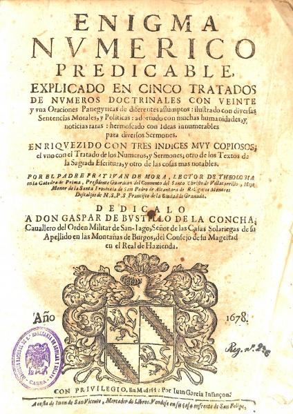 "Enigma numérico predicable explicado en cinco tratados de números doctrinales" por Juan de Mora (Madrid, 1678)
