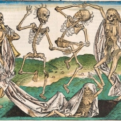 Al mismo tiempo, los velatorios tuvieron durante siglos un carácter doméstico y comunitario: la casa abierta, la comida que circulaba, los rezos y los relatos que sostenían la noche. En el ámbito británico medieval, aquellas velas llegaron a mezclarse incluso con juegos y mimos, algo que el clero censuró y que los puritanos terminaron por proscribir, empujando el duelo hacia formas más contenidas y regladas. Entre la mesa y el altar, entre la risa y el rezo, Europa fue aprendiendo a despedir a los suyos.