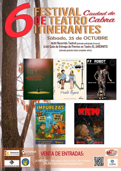 Las entradas ya están disponibles tanto de forma presencial en el establecimiento "La Papelería" (calle Doña Leonor) como a través de la web de "La Intriga Teatro" (www.laintrigateatro.com) en el apartado Cabra Festival de Teatro "Itinerantes".