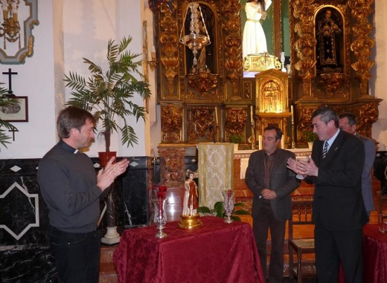 El acto, que contó con la presencia de numerosos hermanos y hermanas de San Rodrigo, estuvo presidido por el hermano mayor, Francisco Borrallo; el secretario, José Morales; el consiliario, Zacarías Romero y el autor de la imagen, Salvador Guzmán. Al finalizar tomó la palabra el Teniente de Alcaldía Miguel Güeto que asistió en representación del Ayuntamiento, invitado por la Cofradía.