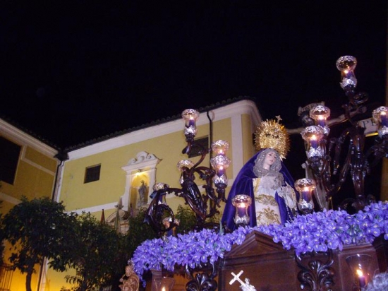 Algo después de haber dado las nueve de la noche en el reloj de la Soledad, el palio llegaba casi al final de la calle Pepita Jiménez, imprimiendo con airoso movimiento y con la exquisitez de la marcha, notas de sobriedad y elegancia que marcan el sello de este Lunes Santo egabrense.