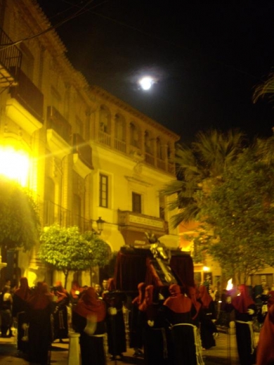 La tarde, apacible, permitió que las procesiones pudieran celebrarse sin riesgo de lluvia y bajo un cielo azul, límpido, que con la llegada de la medianoche nos trajo bajas temperaturas y dejó ver la Luna llena de este Lunes Santo de 2011. Aunque luego, se tornaría en noche muy fría, con lluvia y tormentas que parecen anunciar lo que vienen señalando los pronósticos.