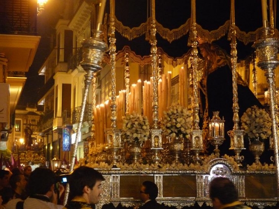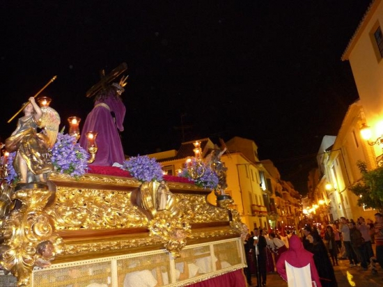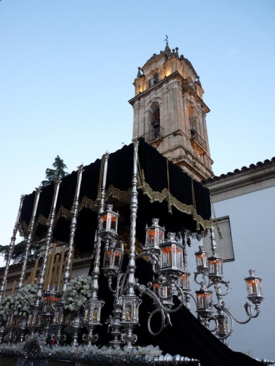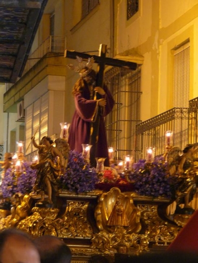 La Agrupación de la Virgen de las Angustias de nuestra ciudad, acompañaba con sus sones a la imagen del Señor que cuenta con más devoción en nuestra Ciudad y al que seguían numerosas personas alumbrando tras el paso. Cuando llegaba al Monasterio de las Agustinas Recoletas, la imagen se giraba hacia las ventanas de la calle Priego, para que las religiosas pudieran ver al Señor. Y mientras daba la vuelta a la Plaza de San Agustín para enfilar la calle Alcalá Galiano, la cofradía lo hizo en silencio, como señal de luto por el reciente fallecimiento de Madre Sacramento. Un silencio que estremecía y que llenaba de emoción el paso del Señor, que parecía avanzar andando abrazado a la Cruz.
