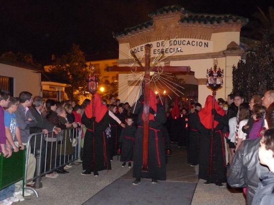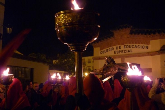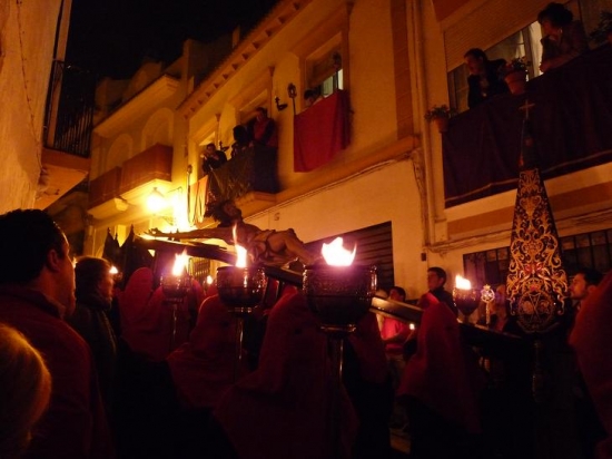 Con total puntualidad, las puertas de Termens se abrían para que el cortejo de penitentes, sobrio y callado, avanzara poco a poco hasta que el Cristo de la Expiración se situaba bajo el dintel, alumbrado por las antorchas, iniciándose el rezo del Via Crucis en esta Cofradía que cumple su cuatrigésimo aniversario en 2011.