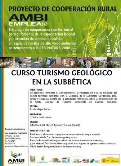 Para asistir al Curso, que es gratuito, hay que inscribirse previamente, en el GDR Subbética, cuya sede está en Cabra, en el teléfono 957 529 271.