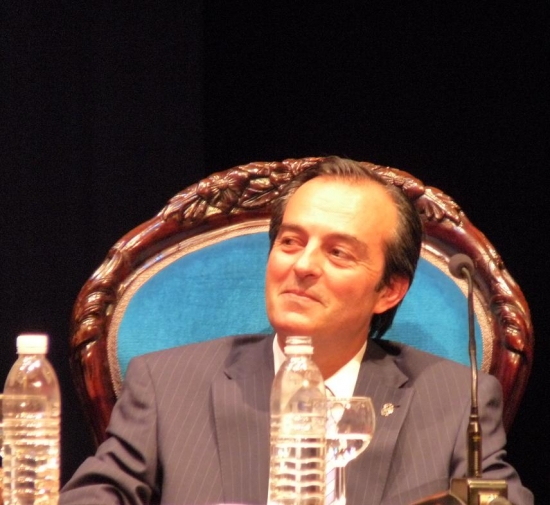 El himno Gaudeamus Igitur ponía broche final al acto académico, con los asistentes puestos en pie en las butacas del Teatro, entre los que pudimos ver a los concejales del Partido Popular Fernando Priego y Ana Peña, que no dejaban de ser felicitados por numerosas personas y también a los que serán nuevos ediles del PSOE, Loli Salido y Rafael Moreno.
