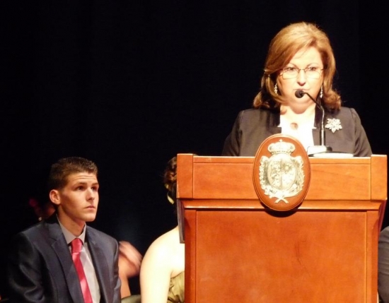 En nombre del Claustro de Profesores, intervenía al final del acto, la profesora Ramona Quintana, quien realizó un sentido discurso y afirmó que el esfuerzo de familias, profesores y alumnos ha sido esencial para llegar a este día. Animó a los graduados a recordar su Instituto, que tanta trascendencia tiene para Cabra y le recordó que desde ahora estarían ligados para siempre a la historia del centro engrosando el elenco de nombres que a lo largo de la Historia han pasado por sus aulas.