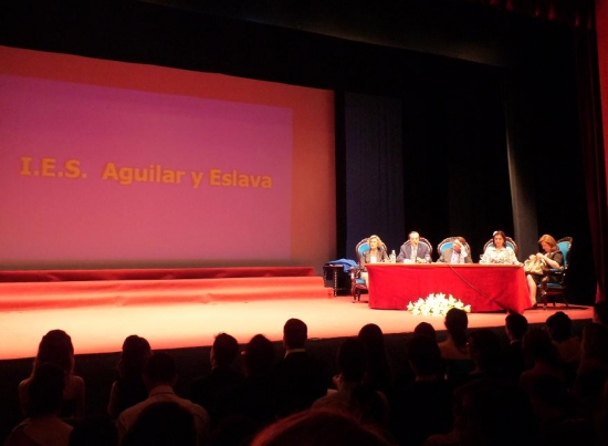 Todos ellos tuvieron palabras emotivas de su paso por las aulas del Aguilar y Eslava, agradeciendo a sus profesores la dedicación y rigor con que les han enseñado, no sólo conocimientos y materias sino, sobre todo, valores y comportamientos para ser personas responsables. Cariñosas palabras para los tutores de los distintos cursos, en especial para Mª Ángeles Piedra, que fue ovacionada por sus alumnos puestos en pie y que recibía este caluroso homenaje de sus recién graduados alumnos. La complicidad de sus comentarios con sus compañeros y profesores, provocó risas y aplausos que dieron paso a una serie de videos sobre cada una de las promociones que se graduaban.
