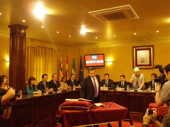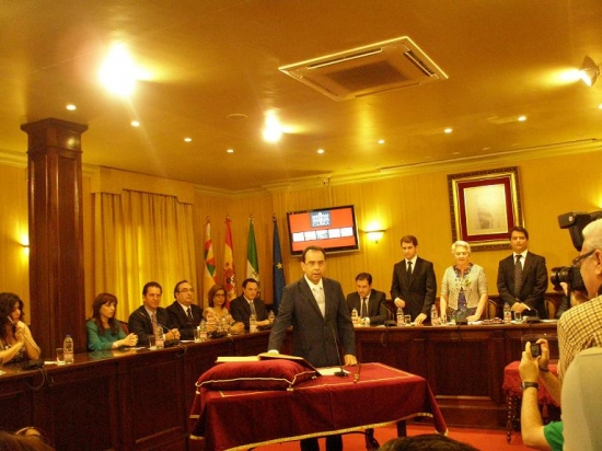 Tras los trámites oportunos, en los que la única incompatibilidad se daba en el concejal Manuel Alguacil por su condición de personal del Ayuntamiento y firmada el acta de arqueo y el inventario municipal, se procedió a la toma de posesión de los nuevos concejales y concejalas, que fueron prometiendo y jurando sus cargos. La nueva concejala de IULV-CA, Elvira Asencio prestaba promesa, indicando que la lealtad al Rey, la hacía por “imperativo legal”. Todos los miembros de los grupos Popular y Andalucista juraron sus cargos, lo mismo que los concejales del PSOE Rafael Moreno y Loli Salido. El resto de concejales y concejalas prometieron en su solemne toma de posesión. Luego, la presidenta de la Mesa, Ana Peña, les fue entregando a cada uno la insignia con el escudo de Cabra que les acredita como concejales del Ayuntamiento de la Ciudad. En sustitución de Mª Dolores Villatoro, que renunció a su acta de concejala por el PSOE, tomó posesión Teba Roldán Juez.