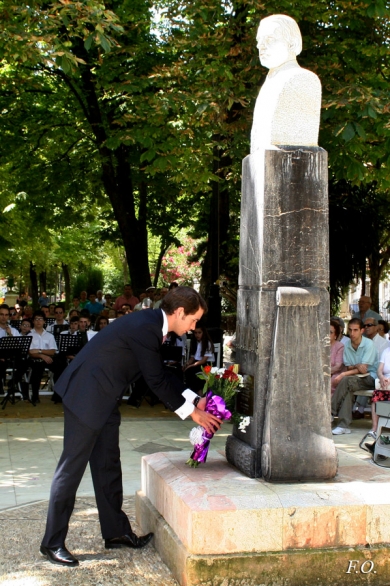 Ante la falta de la tradicional entrega del premio esta primera parte del homenaje al novelista contó con una disertación del historiador y ex alcalde de Cabra, José Calvo Poyato, que ilustró al público hablando de Valera y la novela histórica. Tras su intervención el regidor de la ciudad se dirigió a los presentes y, al finalizar se procedió a la tradicional ofrenda floral ante el monumento labrado en piedra caliza por el escultor Maíz Castro. A continuación dio comienzo el tradicional concierto de la AIM Banda de Música de Cabra.