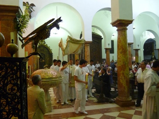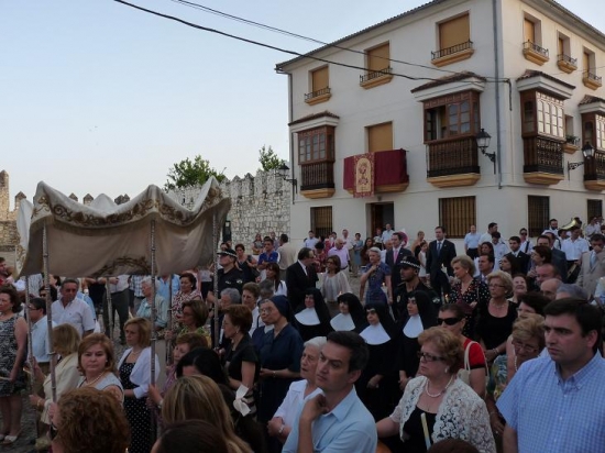 A eso de las once de la noche, con las calles iluminadas con luz artificial, la procesión terminaba su recorrido. Una vez en el templo, se procedió a la bendición y reserva en el Sagrario, donde se guarda el Santísimo Sacramento durante todo el año, tras haber recorrido en la custodia las calles de la Ciudad en esta solemnidad del Corpus Christi de 2011.