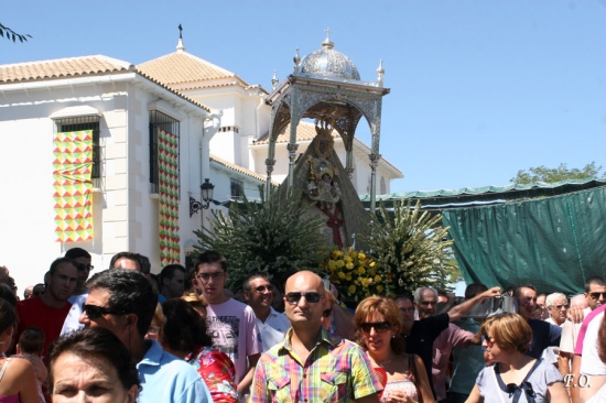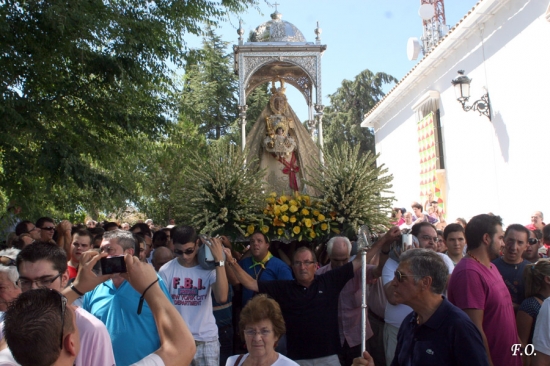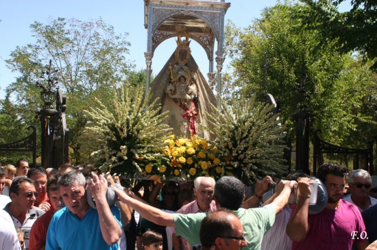 La procesión avanzaba rumbo al patio del aljibe y los cánticos de los devotos acompañaban al cortejo. Ya en los miradores se procedió al rezo de la Salve Popular que fue entonada por Antonio Roldán y Alfonso Vergillos. A su término la Señora regresaba al interior del templo esperando la llegada del próximo 4 de septiembre cuando el pueblo vuelva a reencontrarse con su amada Patrona en la tradicional Bajá que supone el inicio de las fiestas mayores de la ciudad.