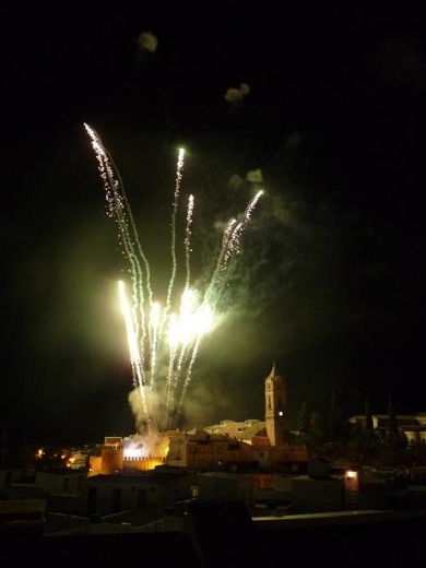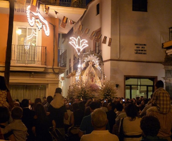 El público aplaudió en varias ocasiones los preciosos fuegos que iluminaron la noche y que sirvieron para dar por concluida la procesión de nuestra Amada Patrona y también, tras recogerse la Virgen en la Parroquia, la Feria de Septiembre de 2011.