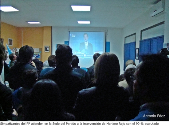 Los datos que iban arrojando las mesas electorales no hacían sino más que aumentar la euforia y la alegría que se respiraba en la Sede del Partido Popular de Cabra, junto al Pabellón de Deportes. El Alcalde de Cabra, Fernando Priego, esperó a que fuera el ya Presidente electo del Gobierno de España, Mariano Rajoy, para dirigirse a los simpatizantes y militantes que iban acercándose a la Sede tras participar en esta jornada de Elecciones Generales.