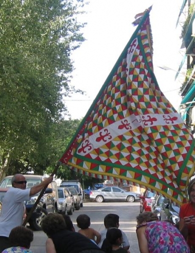 Cuando sientas el rojo de la bandera no tendrás más frontera que ese paraíso de despedida que es Palacio, ni más territorio que aquel que marca la frontera de una fuente que lleva su sangre transparente para alimentar nuestro cuerpo. Rojo es por roja la bandera del fulgor maternal de quién siempre se hace nuestra entre los colores de un arco iris vestido para la ocasión de carroza imperial.