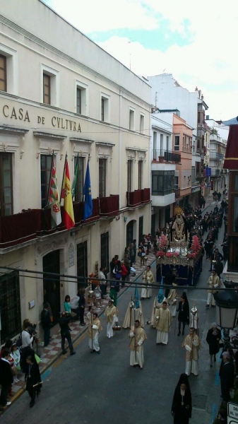 Desde la parroquia de la Asunción, finalmente las cofradías de Ntra. Sra. del Rocío de Pasión, la de Ntro. Padre Jesús Nazareno y la de Ntra. Sra. del Mayor Dolor, iniciaban su salida procesional. El tiempo ha permitido una buena mañana de Viernes Santo y las tres cofradías han podido completar sus horarios e itinerarios con bastante gente presenciándolos. La Virgen del Rocío, que iba primera en el cortejo, lo hizo con paso más rápido, mientras que el Nazareno y la Virgen del Mayor Dolor siguieron más pausadamente hasta completar el itinerario y volver a la parroquia de la Asunción, sede de las tres cofradías de la mañana del Viernes Santo.