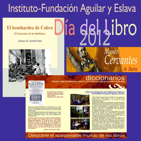 Por su parte, la exposición "Diccionarios: Fondo Bibliográfico Instituto-Fundación Aguilar y Eslava" con la que se dan a conocer los valiosos ejemplares de diccionarios y libros de consulta de esta histórica biblioteca, se inaugurará en la Sala de Exposiciones temporales del Museo Aguilar y Eslava, el jueves 26 de abril con la entrega en el mismo acto de certificado y diplomas a los voluntarios culturales participantes en el Taller de Catalogación de la Biblioteca Histórica del Instituto-Fundación Aguilar y Eslava" que viene trabajando a lo largo del presente curso bajo la supervisión y dirección de Antonio Suárez Cabello.