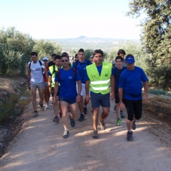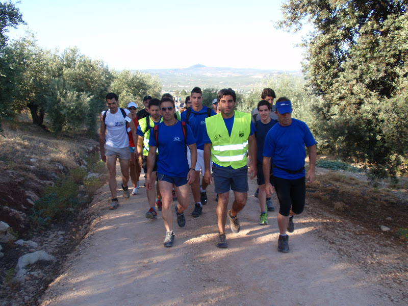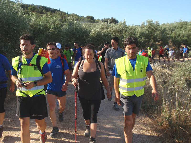 La salida se iniciaba a las 8:15h, saliendo de la Fuente del Rio para coger seguidamente la Vía Verde en dirección a Doña Mencia. Una vez pasada la antigua estación de ferrocarril los participantes, abandonaban la Vía Verde para subir por el camino del Chorrón hasta llegar al cortijo Juandescama y de nuevo coger la Vía Verde; una vez pasado el túnel del Plantío se continuó hacía la falda del cerro de Camarena hasta llegar a la fuente del Majaral donde el grupo paró a para desayunar y refrescarse, ya que empezaba a notarse el calor.