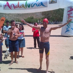 Cuando a mediodía Víctor tocó la playa y atravesó el arco instalado para la ocasión se fundió en un emotivo abrazo con familiares y amigos y especialmente con Kiko Lozano, responsable de toda las infraestructura y quien con su empresa "Neoaktivo" se ocupó de permisos, barcas, vallas, ... y puso a disposición de la causa a su equipo de chavales dignos de todo elogio. Kiko, otro deportista egabrense ejemplar por sus retos solidarios, esta vez estuvo desde la barrera pero su labor fue impagable.
