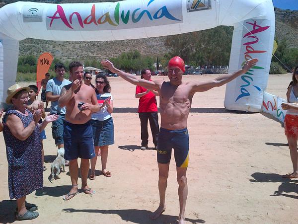 Mientras todo esto sucedía Víctor seguía completando sus casi 15 kms de nado. "Tuve momentos de debilidad ? comentaba después ? sobre todo por la reproducción de una lesión que me hizo dudar. Pero me dije a mi mismo que tenía que soportar el dolor y que luego el esfuerzo merecía la pena. Tenía a mucha gente involucrada y no podía fallarles. Me sobrepuse y acabé con fuerza. En cada brazada me acordaba de todos aquellos que me han ayudado y especialmente de dos personas: de José María Sánchez, un joven ciclista que entrenaba fallecido recientemente en un trágico accidente, y en mi mujer Araceli, mi sostén principal y sin la cual nada podría hacer".