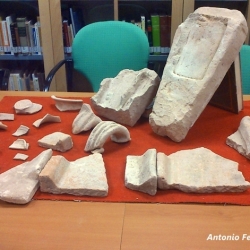 Por su parte, Antonio Moreno, Director del Museo Arqueológico, ha indicado que dos de las piezas más grandes son "estelas funerarias" lo que hoy conocemos como lápidas. Estas formas servían para "señalizar" la presencia de un cadáver que yacía enterrado en esa zona. Dichas "estelas" tenían forma rectangular y en su parte superior contenían una "hendidura" donde, según el "estatus" social del fallecido se introducía una pieza de mármol con su nombre o directamente se pintaba con color, presumiblemente púrpura, el nombre del fallecido. En este sentido, Moreno ha avanzado que se realizarán estudios a través de tecnología de luces led e infrarrojos para desvelar, si es posible, la inscripción existente en esta estela funeraria.