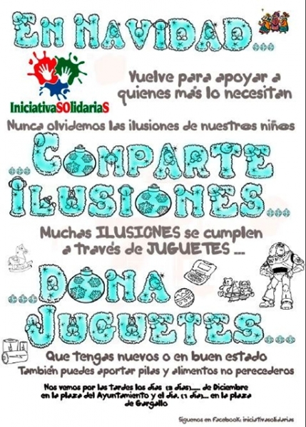 Desde "Iniciativas Solidarias" hacen un llamamiento no sólo a la ciudadanía sino a las diferentes AMPAS de los colegios de Cabra mediante el reparto de octavillas entre los padres para que durante las fechas que se establezcan, hagan acopio de juguetes en los Centros Escolares egabrenses.