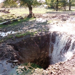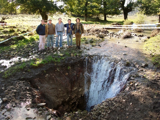 El ponor es un lugar peligroso. En dos semanas ha visto aumentado su diámetro por los desprendimientos del terreno. No se recomienda su visita.