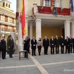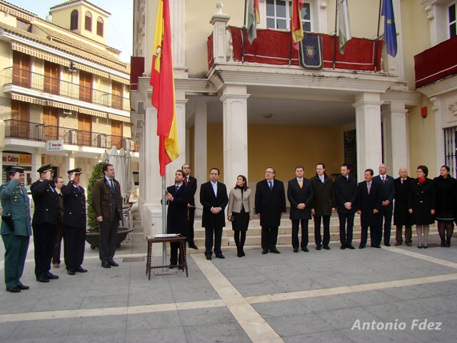 Posteriormente, los concejales se dirigían hacia la entrada de la Casa Consistorial donde con los acordes del Himno Nacional interpretado por la AIM Banda de Música de Cabra, el Alcalde de Cabra, Fernando Priego realizaba el izado de la bandera rojigualda que estará instalada durante todo el día de hoy en la Puerta de nuestro Ayuntamiento. La nota musical estuvo a cargo del violinista egabrense, Ángel Moreno, que interpretó una pieza al violín.