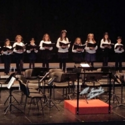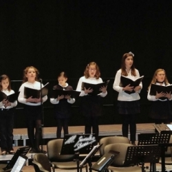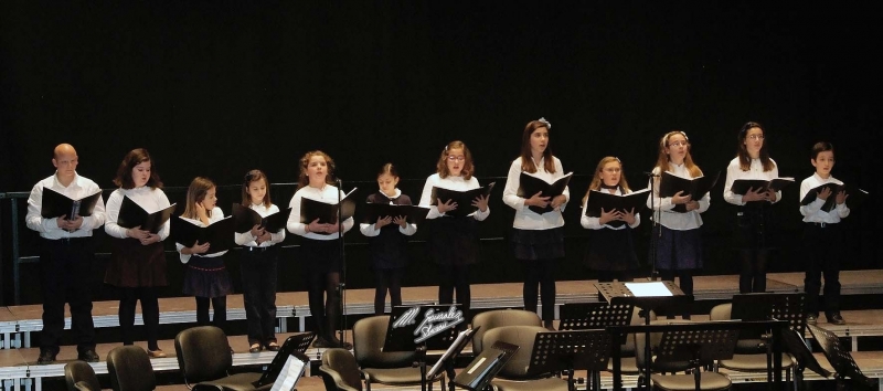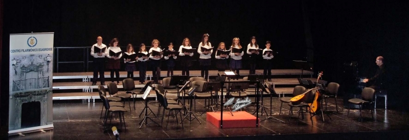 En la primera parte la ESCOLANÍA DEL C.F.E. que dirige Alfonso Fernández Pérez-Aranda, presentó cinco villancicos con acompañamiento pianístico del mismo director. Estos villancicos fueron: "Llega la Navidad" (Miliki), "Tan Tan (Popular), "Adivina, adivinanza" de Alfonso Fernández y letra de su esposa Mª Carmen Güeto. Siguió "Joticas al Niño" (Villancico popular aragonés), con ritmo de jota que fue cantado muy afinado con la voz clara de la solista Sandra Gómez. Y para finalizar, los pequeños, con mayoría femenina, hicieron "Carta a los Reyes Magos", villancico con música de Alfonso Fernández y letra de Mª Carmen Güeto, con tres voces solistas, Sandra Gómez, Aida Vera y Marta González. Las doce voces blancas que componen la Escolanía cantaron con seguridad y fueron premiados con muchas palmas. Esperamos aumente su número para que sea la cantera de voces del C.F.E.
