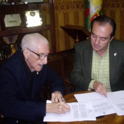 Al término de la celebración en la parroquia de los Remedios, entregaba un recuerdo de esta celebración a los asistentes, entre los que se encontraban antiguos compañeros, amigos, feligreses, miembros de La Opinión, como Rafael Nieto y Rafael Valentín y patronos de la Fundación Aguilar y Eslava, entre ellos el Alcalde, Fernando Priego y el presidente, Salvador Guzmán, así como el que suscribe.