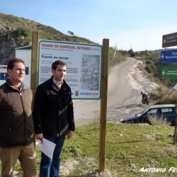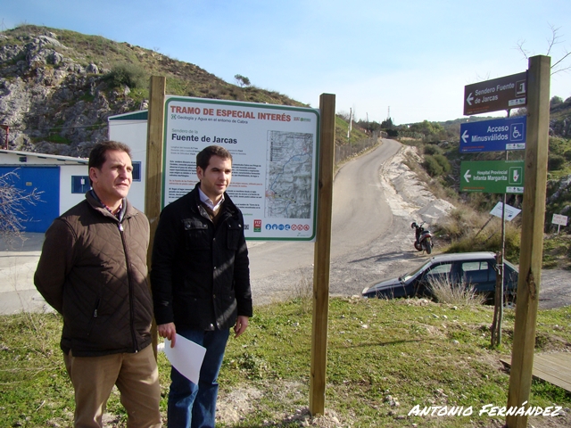 El Alcalde de Cabra, Fernando Priego, acompañado por el Delegado de Turismo y Deporte, Francisco Casas han comprobado esta mañana el aspecto que presenta la nueva señalización existente en la Vía Verde de la subbética a su paso por Cabra. Se trata de señalizaciones que, como ha indicado Fernando Priego, indican al usuario de la Vía Verde la proximidad de un paraje tan singular como es el de la Fuente del Río o el inicio del sendero por la Sierra Subbética hasta el conocido paraje de "Fuente de Jarcas".