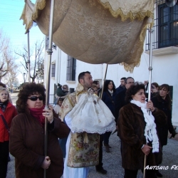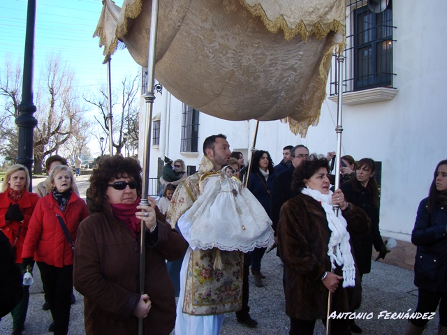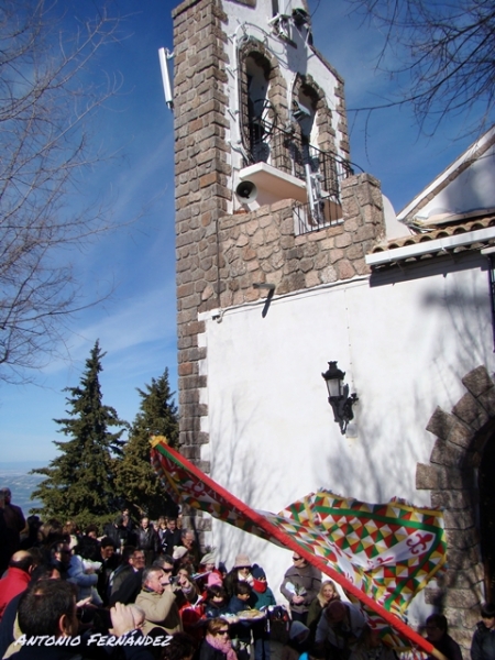 Con una temperatura que a buen seguro ha bajado de los 0 grados aumentada quizás por la sensación térmica provocada por el frío viento existente, se procedía, tras la bendición de las velas y el romero por parte del Rector del Santuario, Don Manuel Osuna Bujalance, a la procesión por los alrededores de la "Casita Blanca" del Divino Niño que portado por el vestidor de la Imagen de la Patrona de Cabra y ataviado con un precioso traje de "cristianal" y un "camafeo" con la S de Sierra fue acompañado por los devotos que con los cánticos de las Coplas de la Virgen de la Sierra hacían frente a las bajas temperaturas.
