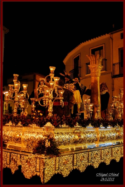 La expectación fue grande y numerosas personas se agolparon tanto en las puertas de la Soledad, como en las de la Asunción, para esperar los cortejos de las tres cofradías de la Noche de Ramos, que pusieron en la calle dos espléndidos misterios, el del Huerto y el del Lavatorio, y el paso de palio de la Virgen de la Misericordia. Los acompañamientos musicales fueron también de extraordinaria calidad: buenas cornetas y tambores en el Lavatorio, con Coronación de Campillos; la acreditada banda de música de Rute en la Misericordia y una extraordinaria calidad en la agrupación musical del Cautivo de Estepona tras el Misterio de la Oración en el Huerto.