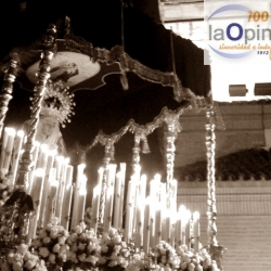 Cuando el Palio se situaba en plena Calle Martín Belda, la fina lluvia caía sobre la calzada provocando que el Cortejo y el Paso de Palio "aligeraran" su marcha en busca de la Capilla de las Madres Escolapias y ante el temor de que las precipitaciones fueran más intensas.